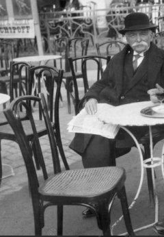 French chef Auguste Escoffier (left), seen here at a café in 1921, helped to found the Ritz Hotel, where Ernest Hemingway was a longtime regular. |