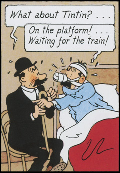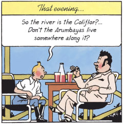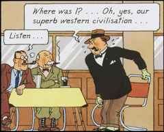 Tintin conversing with Don José Trujillo. The chairs are Thonet B 34 armchairs. |